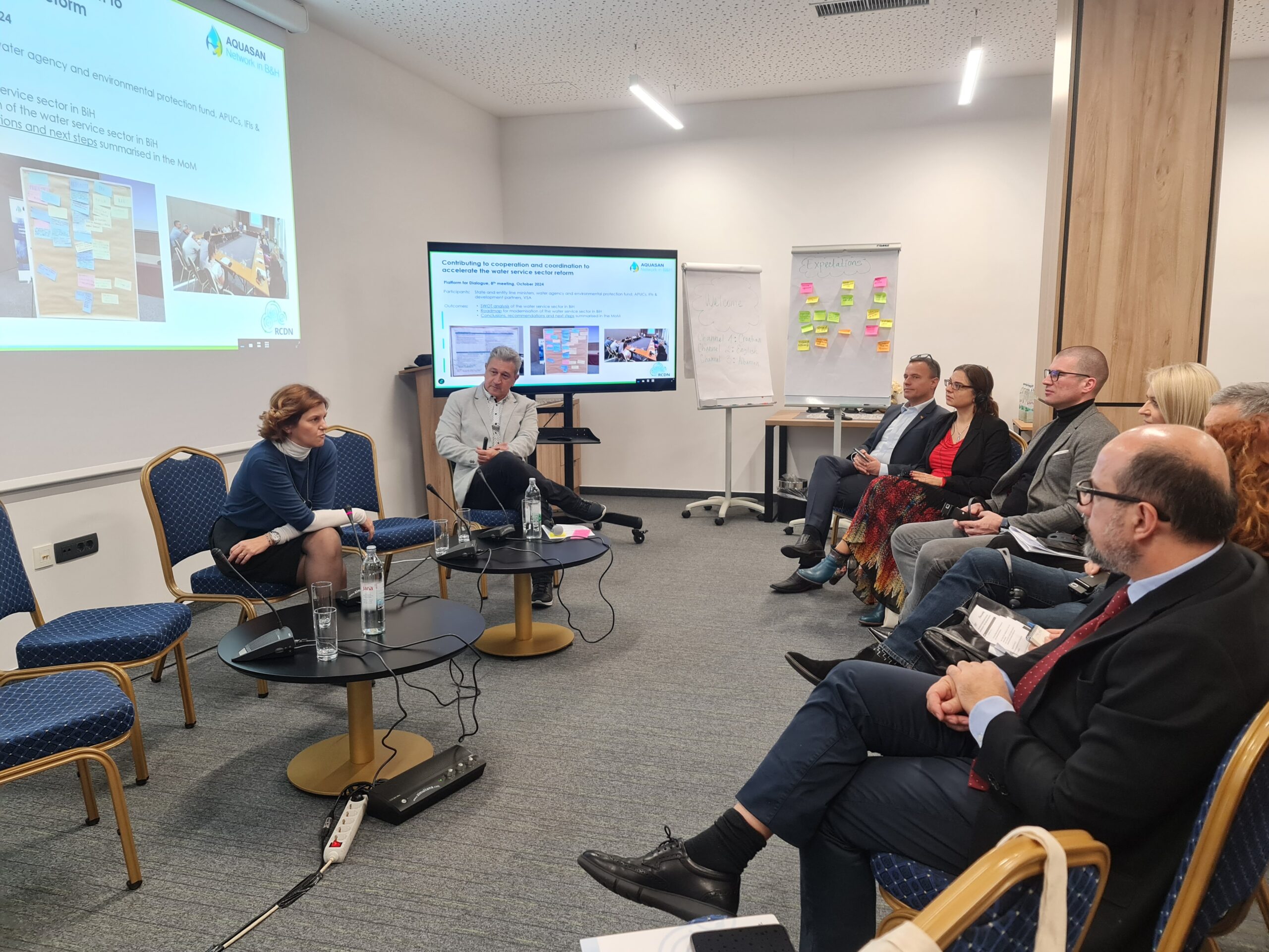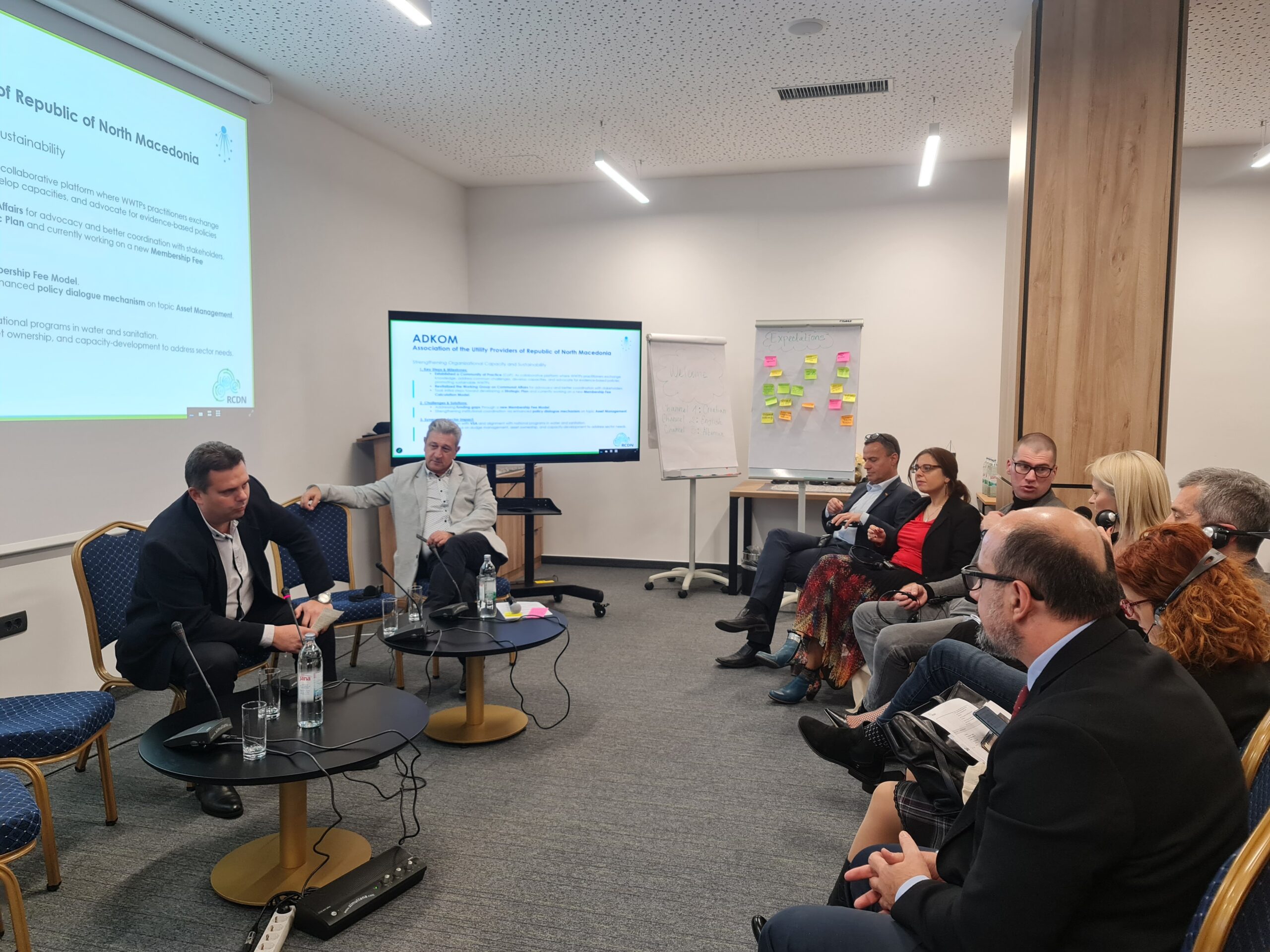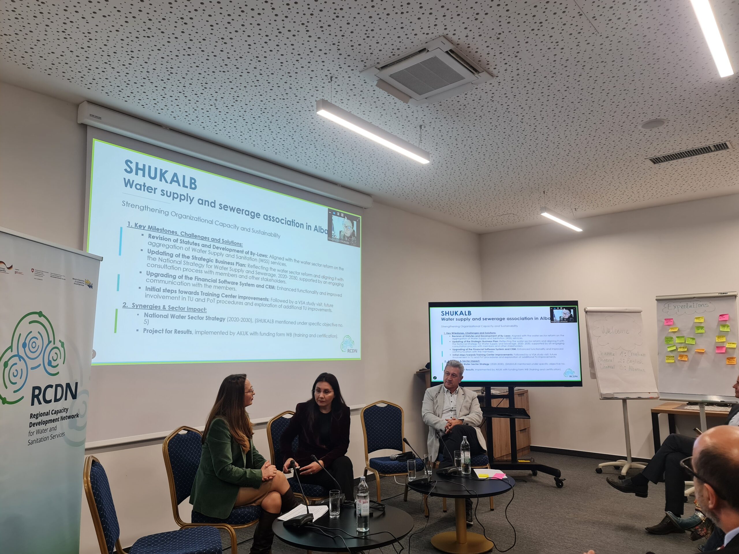 A key segment of the meeting was the joint panel discussion, titled “The Way Forward: Shaping Regional Collaboration and Advocacy”, which included contributions from panellists Felicitas Siek (GIZ/ORF MMS), Karin Gallandat (SECO), Kelmend Zajazi (NALAS), Katerina Schilling (IAWD), and Pavle Donev (GIZ/RCDN+). The panel addressed the strategic direction of RCDN+, potential areas for regional collaboration, and the importance of joint advocacy in the water sector.